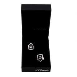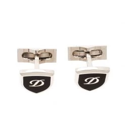 This luxe creation from S.T. Dupont is crafted from silver-tone metal and shaped as crests with a black lacquer coating and label details at the center. Enhance your formal style by pairing this set of cufflinks with your neat shirts.