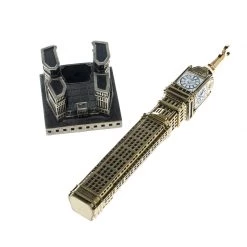S.T. Dupont has always managed to awe us with astoundingly unique designs blended with the fine art of hand manufacturing of writing instruments. Another marvel from the label is this masterpiece, the limited edition Tournaire Mecca Clock Tower fountain pen. This piece number three out of the 99, is a creative wonder which is sculpted exactly like the revered monument, Makkah Clock Royal Tower situated in the noblest place of the world, near the Holy Mosque of Makkah. The pen is rendered in gold-tone metal with an 18k gold nib. The pen is stationed on a detachable metal piece and is filled with blue-colored ink. It has a subtle finish and is designed intricately with specific attention to every minute detail. It is complete with brand label engravements at the bottom. A classic piece worth a thousand gems for a true collector.